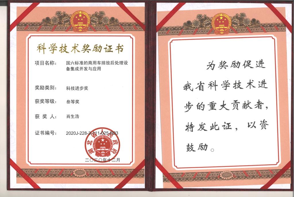 近日,经湖北省科学技术奖励评审委员会评审、省科学技术奖励委员会审议,湖北省人民政府授予公司肖生浩博士参与的《国六标准的商用车排放后处理设备集成开发与应用》项目成果湖北省科学技术进步奖三等奖。该项目旨在开发商用车排放后处理系统一体化集成产品,解决国六排放标准限制下提高商用车排放污染物的转换效率、减少排气压力损失、降低排气噪声、实现商用车柴油机节能减排和低噪声的关键科学问题,为我国商用车排放控制水平的提升提供了重要的技术参考依据。