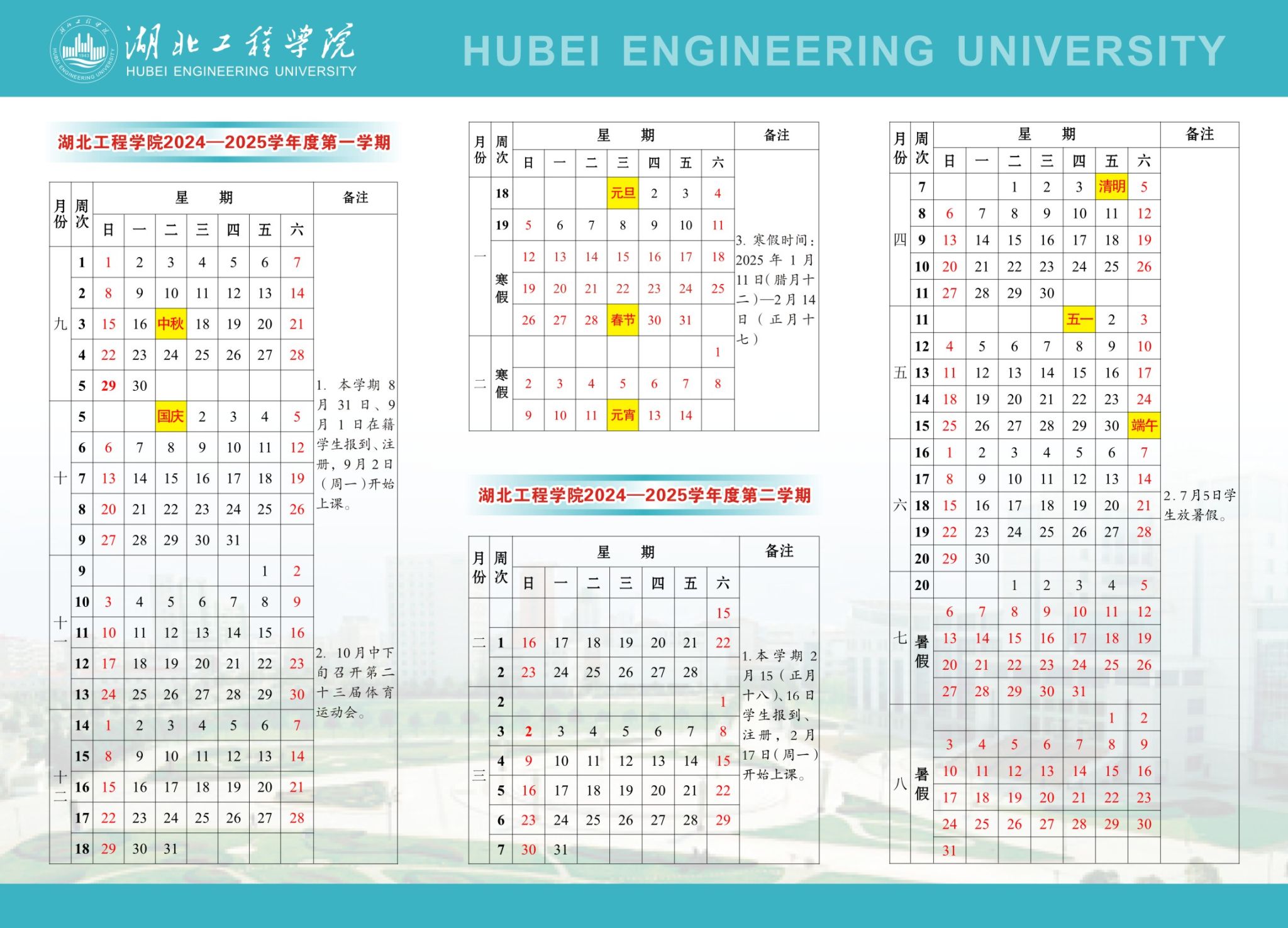 betway西汉姆联官方网站2024-2025学年度校历