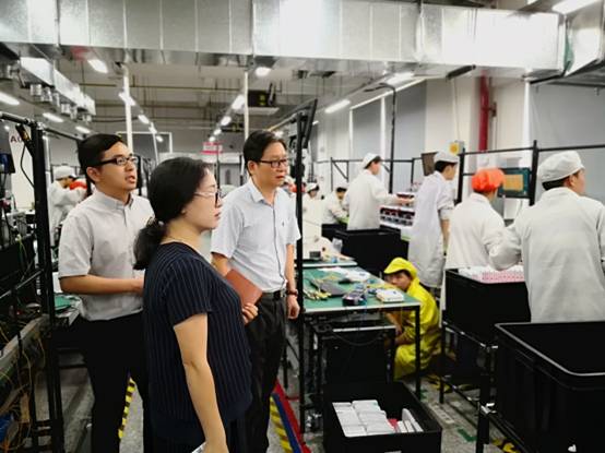 看望完员工后,盛继群一行与企业负责人进行座谈和交流。华工正源智能终端有限公司总经理赵雷、人力行政部部门负责人等热情接待公司一行并组织召开座谈会,会上,盛继群介绍了betway西汉姆联官方网站的基本办学情况和本科人才培养相关要求,赵雷总经理对公司教师们的到来表示热烈欢迎和衷心感谢,他详细介绍了公司发展历程、市场规模、产品业务等情况,并对公司员工的实习表现给予了充分肯定,反映公司员工综合素质高,专业知识扎实,工作能力强,希望实习结束后择优录取部分员工签约正式就业合同,完善公司专业人才队伍建设。双方还就实习基地建设、实习协议签署、实习管理等进行了深入交流并达成共识。会议结束后,双方一起参观了生产车间,并就实习具体内容进行探讨。
