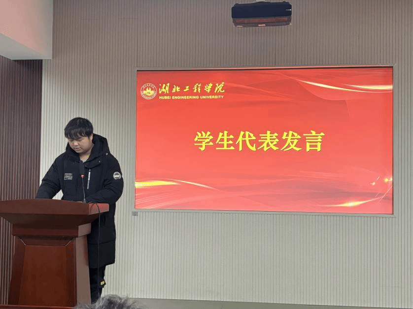 获奖员工代表、2022级机械设计制造及其自动化专业的吴翔同学结合自身经历分享了参赛经验,他从赛道选择、团队组建、备赛过程、学术调研等方面进行了详细介绍,为同学们提供了宝贵的参考和借鉴。