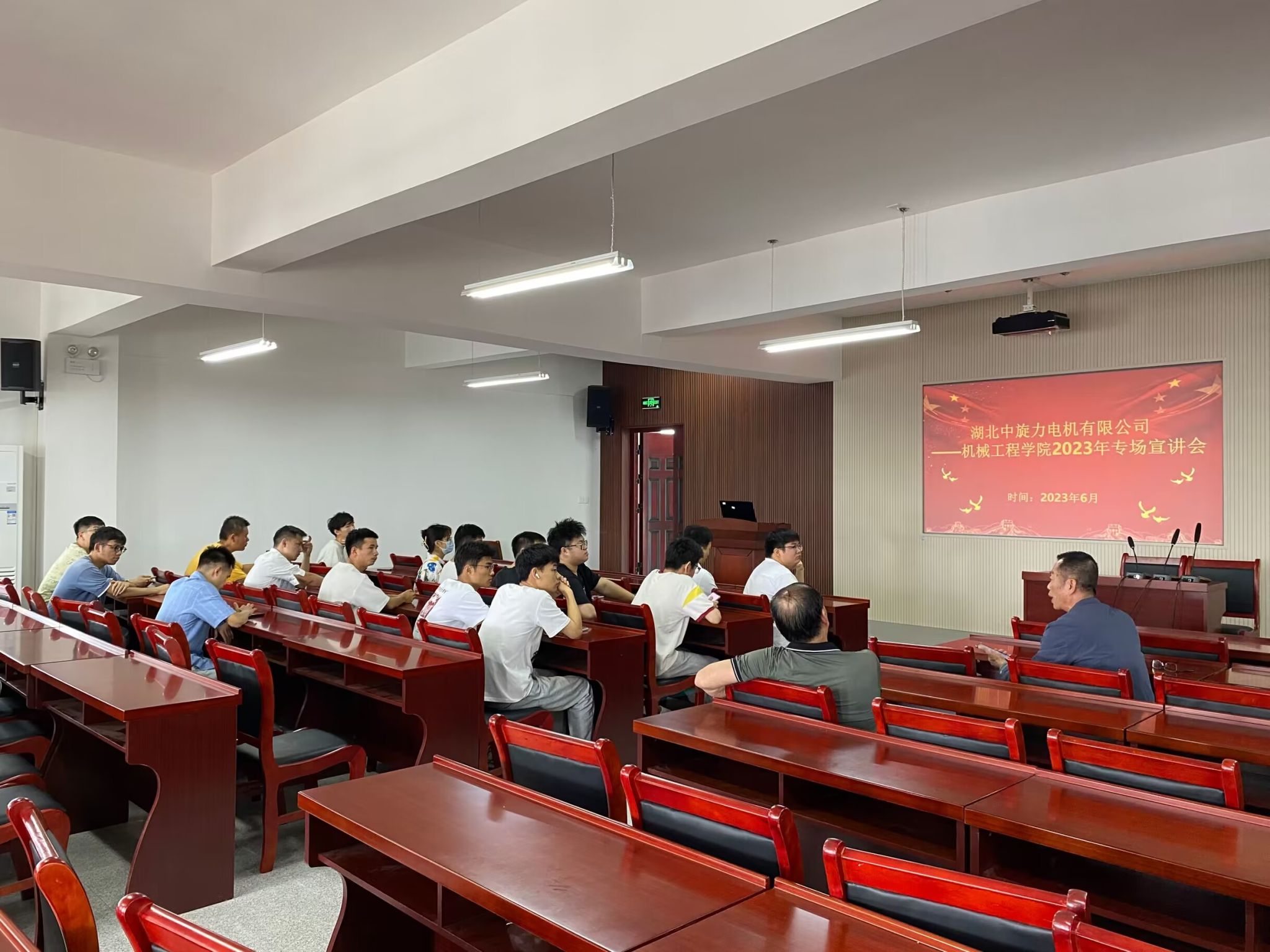 为继续推进2023届毕业生就业工作,促进2024届毕业生提前认知就业形势、在实践中提高综合能力、做好就业准备,66日,公司在三园区1号楼报告厅举办了2023年实习就业专场宣讲会。分别邀请了湖北中旋力电机有限公司和孝感华工高理电子有限公司进行实习就业招聘宣讲, 2023届、2024届毕业生60余人参加宣讲会。