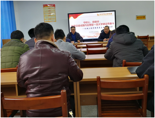 11月28日,​公司党总支书记盛继群向全院师生党员讲授了一堂以“守初心、担使命,为早日建成国内应用型一流大学建设而奋斗”为主题的党课。公司党委“不忘初心、牢记使命”主题教育督导组第五组组员何飞、郑红梅两位同志出席本次党课活动。