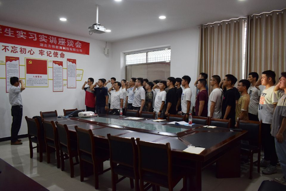 7月1日下午,公司党总支书记、执行经理盛继群,员工辅导员朱炜烨一行前往位于十堰的二汽实习基地,看望正在进行生产实习的公司员工,在实习基地的党员活动会议室,盛继群为5名教师党员和25名员工党员上了一堂生动的党课。他指出,党员要讲党性,每一个共产党员都要牢固树立党章意识,员工党员要发挥好先锋模范作用,带头做好本次实习活动,更要关心关爱其他同学,树立服务理念,帮助非党员员工克服实习中的困难,顺利完成生产实习任务;同时从“五个坚持”阐述了如何全面加强党的建设,并嘱托员工党员们要加强学习,继续努力,为党的事业建设添砖加瓦。最后全场党员同志在盛继群的领誓下,集体重温了入党誓词。