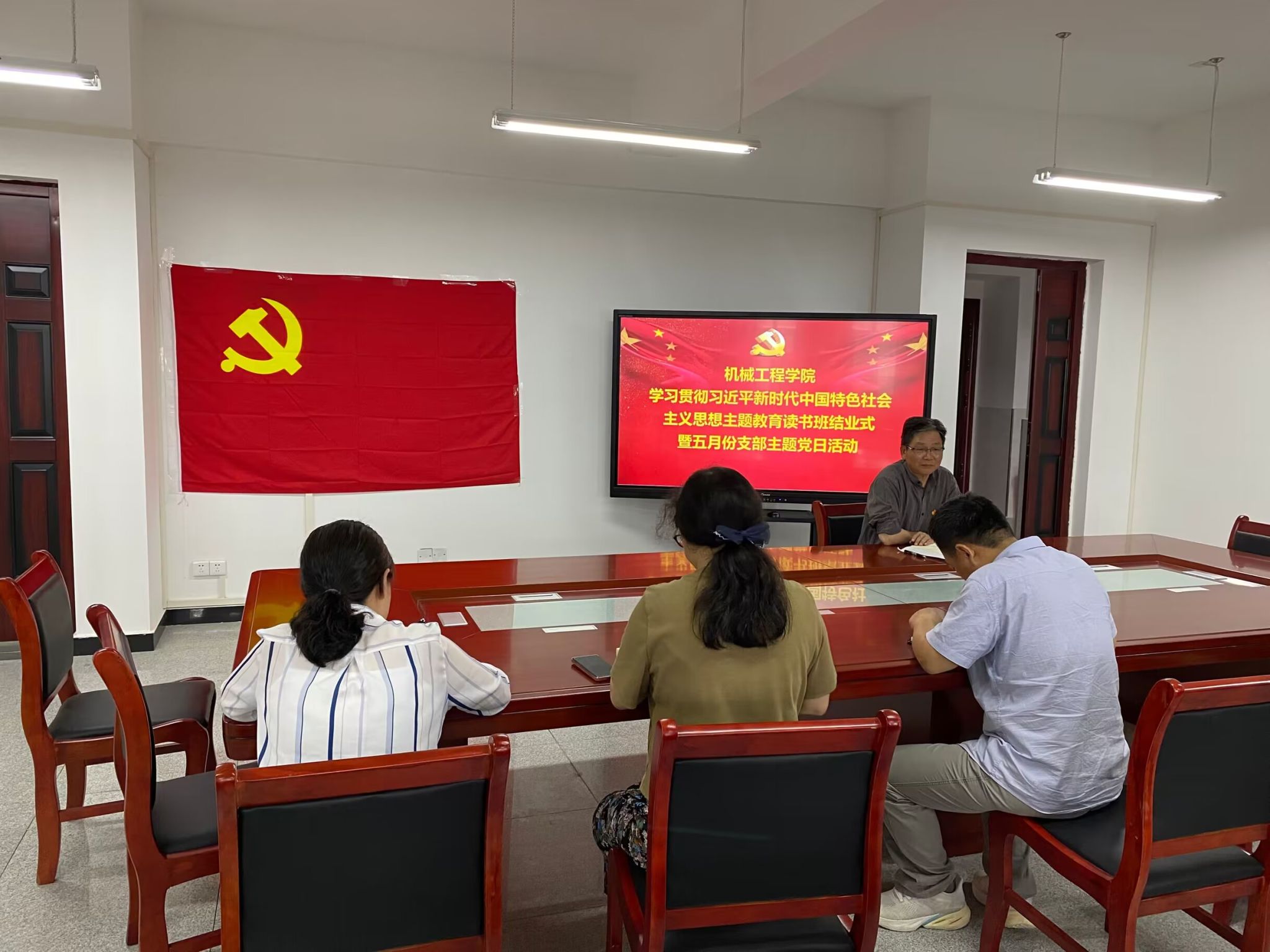 5月18日下午,公司举行学习贯彻习近平新时代中国特色社会主义思想主题教育读书班结业式暨五月份支部主题党日活动。结业式由公司党委书记盛继群主持,公司全体班子成员、党支部书记和师生党员参加学习活动。