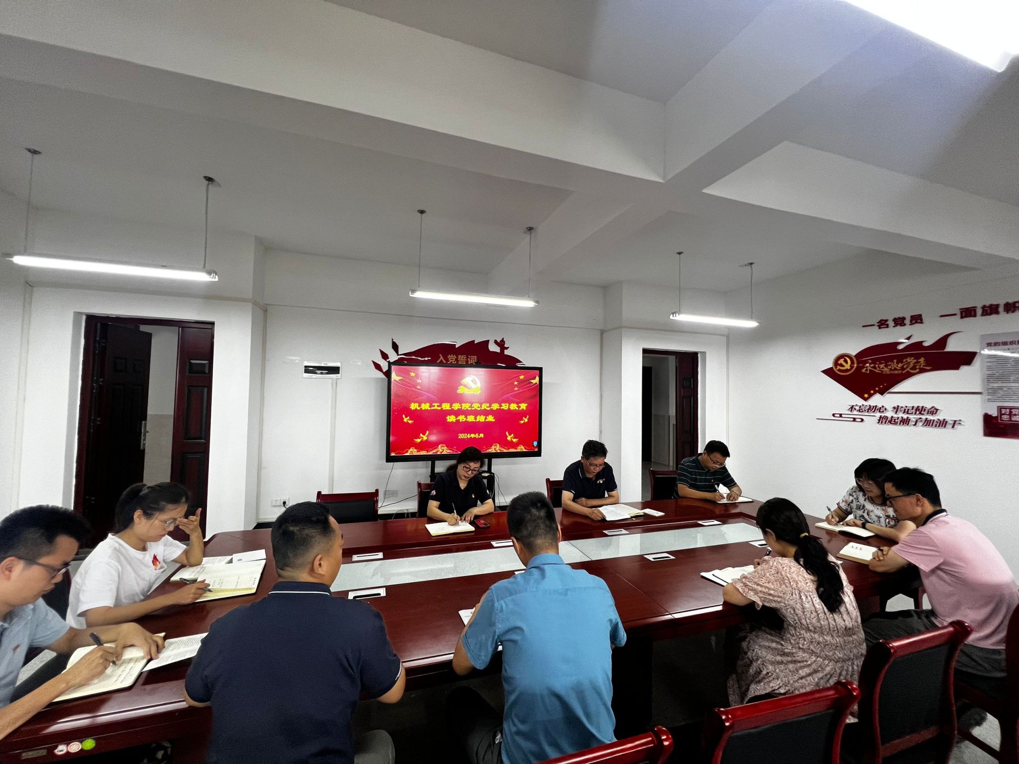 盛继群就下一步党纪学习教育提出三点要求:一是班子成员要率先垂范,牢记学习永远在路上,不断强化理论武装,真正学出绝对忠诚的政治品格、遵规守纪的行动自觉、扛牢责任的实干担当、学出走在前头的实绩实效。二是党员领导干部要通过党支部“三会一课”、主题党日、读书班、网络学习平台等形式认真学习,主动在思想上划出红线、在行为上明确界限,把遵规守纪刻印在心,内化为言行准则;要把初心使命放在心上、扛在肩上、抓在手上,切实将学习成效转化为履职尽责的实践;三是党员教师要牢记立德树人的根本任务,员工党员和入党积极分子也要争做学习标兵、爱院爱校标兵、团结友爱标兵,主动将自己的发展融入国家民族复兴的伟大进程中,为中国式现代化贡献青春力量。