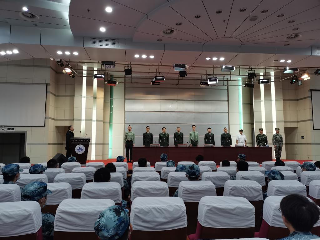 下午,以国防教育为主题开展了讲座和宣讲活动。副书记钟鸣老师主要从增强国防观念、普及国防知识、发扬爱国精神等方面入手讲授了国防微课。分团委书记、军训辅导员禹建平老师重点解读参军优厚政策及军营生活对员工身心素养提高的重要作用。学工部胡明亮老师带领公司国防教育中心的优秀退役复学老员工为2020级新生做了精彩的宣讲报告,同学们被浓浓的国防教育氛围感染,掌声不断。