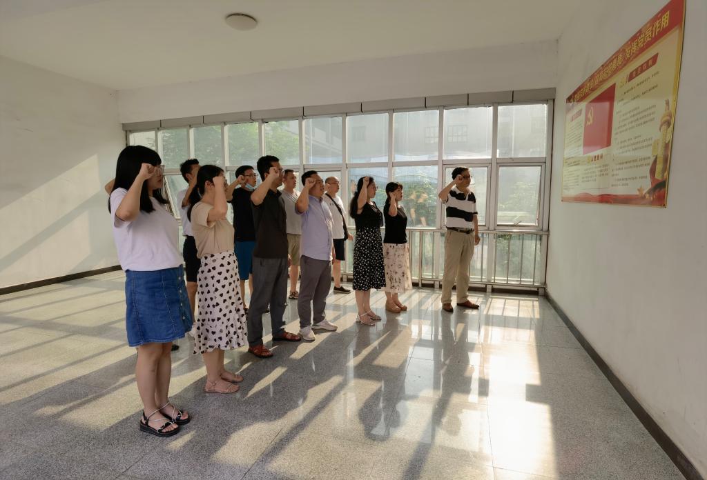 主题党日活动中,公司党总支书记盛继群同志带领全体党员教职工佩戴党员党徽亮身份、重温誓词找初心、瞻仰党史悟思想、对党表白诉忠诚,激励党员同志在教书育人实践中当先锋做表率。