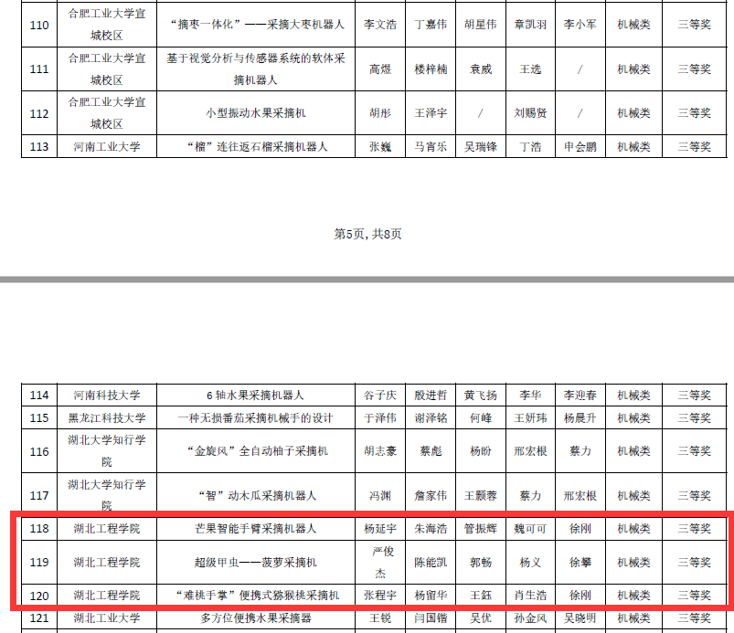 近日,2022年中国老员工机械工程创新创意大赛“创意赛道”:“机械产品数字化设计赛”决赛结果公布。betway西汉姆联官方网站参赛作品《芒果智能手臂采摘机器人》(参赛员工:杨延宇、管振辉、朱海浩;指导老师:魏可可、徐刚)、《“难逃手掌”便携式猕猴桃采摘机》(参赛员工:张程宇、杨留华、王鈺;指导老师:肖生浩、徐刚)、《超级甲虫——菠萝采摘机》(参赛员工:严俊杰、陈能凯、郭畅;指导老师:杨义、徐攀)均获得全国三等奖。