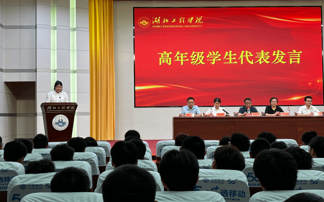 2023级陈晓宇作为高年级员工代表发言,她结合自身从川西北山区到荆楚大地的求学经历,分享了“以学为本筑牢根基、以赛促学挑战创新、以干促能锤炼素养、以趣为伴丰富生活”四点体会。她用自己在学科竞赛中斩获国家级奖项、在社会实践中获评“标兵实践团队”的经历,激励新生主动探索、勇敢尝试,在大学中收获成长与进步。